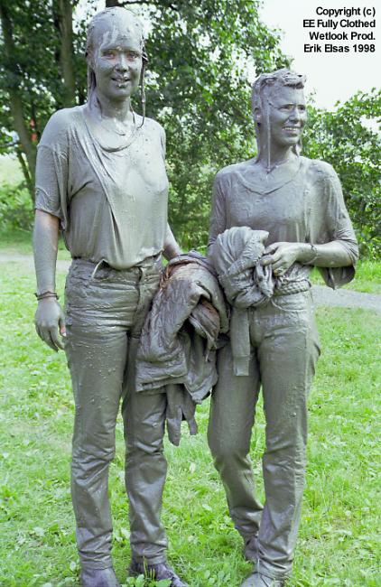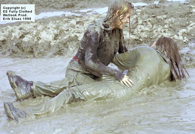 girls have a magnificent mudfight. Finally, they clean themselves in the lake.