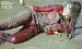 brownish pants and a red/brown sweater over a blue tshirt. The sweaters come off