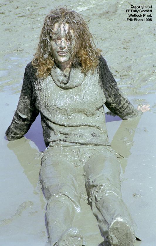 smearing herself with a bit of mud, and ends up rolling through the muddy pond.